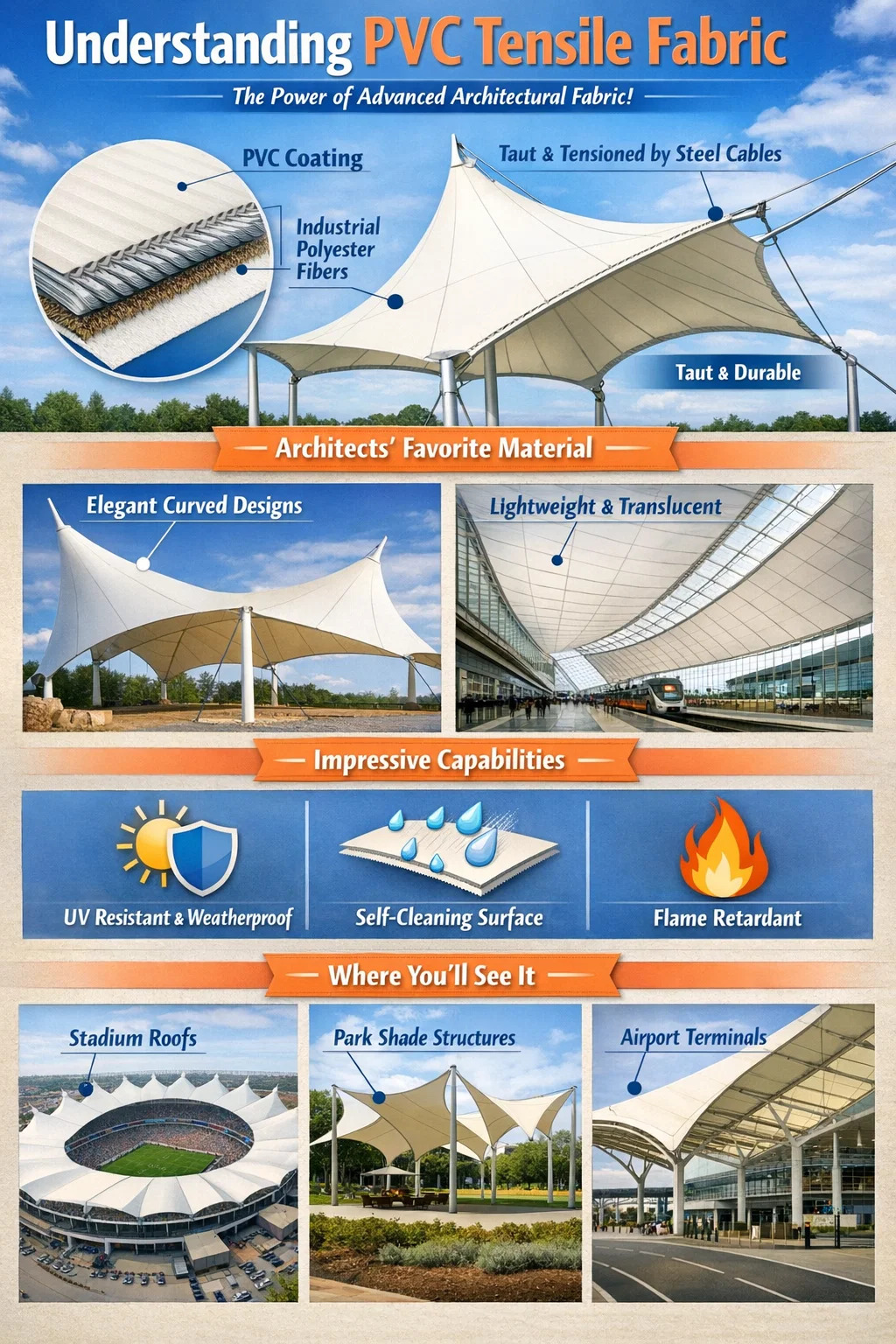น้ำหนักเบามาก: เมื่อเปรียบเทียบกับคอนกรีตเสริมเหล็ก ผ้า PVC tensile นั้นเบามาก ซึ่งหมายความว่าโครงสร้างเหล็กที่รองรับสามารถทำได้ง่ายมาก ช่วยประหยัดวัสดุก่อสร้างได้มาก
