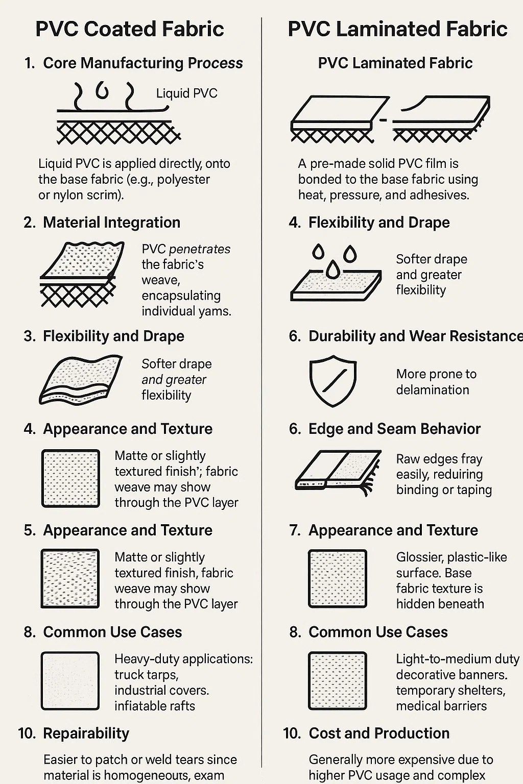 นี่คือความแตกต่างระหว่าง ผ้าเคลือบพีวีซี และผ้าเคลือบพีวีซี อธิบายทีละจุด: